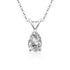 The Evelyn Necklace Pendant features a single stunning pear-shaped Moissanite weighing 1.5 carats, elegantly set in 925 sterling silver and finished with a sleek layer of rhodium plating for added shine and durability.