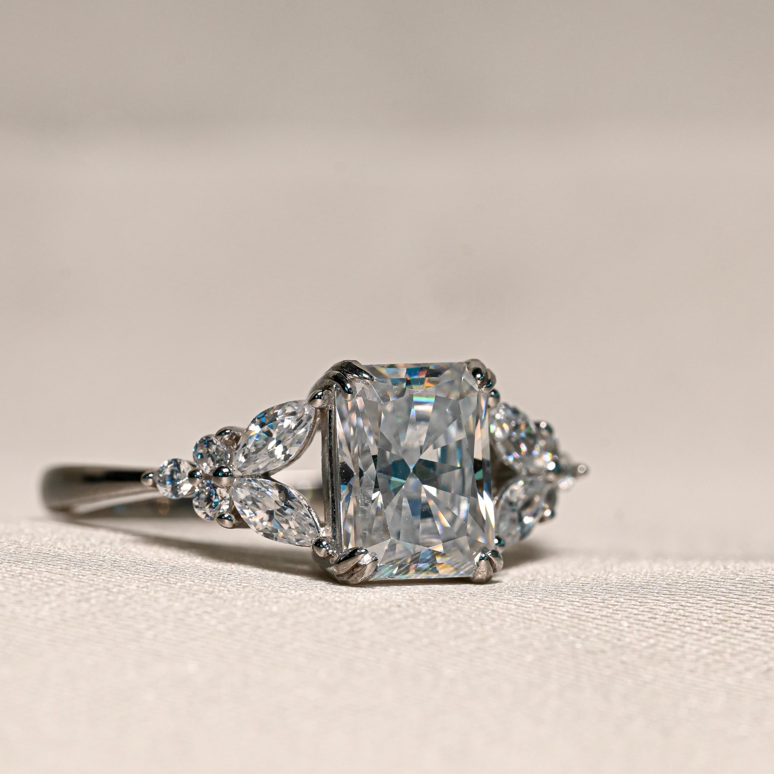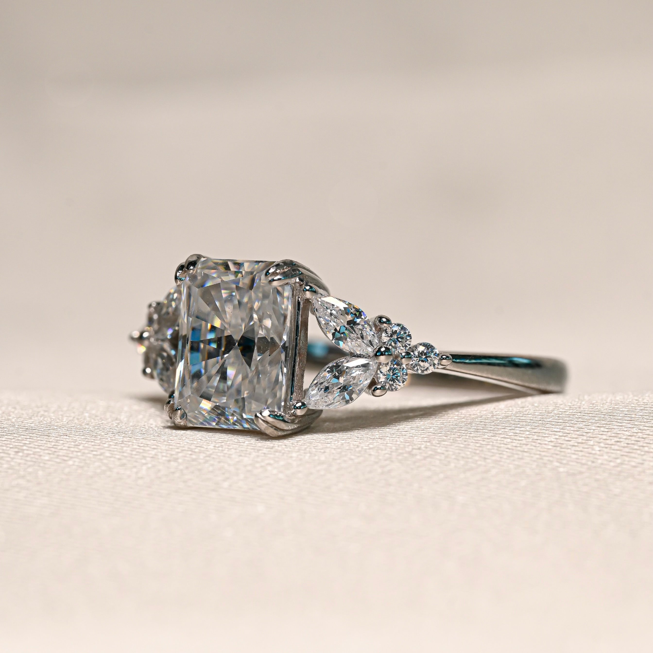 Elevate your elegance with this captivating radiant-cut Moissanite ring. The centerpiece — a brilliant 2-carat radiant Moissanite.