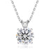 The JENNY Necklace Pendant features a single stunning round-shaped Moissanite weighing 4 carat, elegantly set in 925 sterling silver and finished with a sleek layer of rhodium plating for added shine and durability.