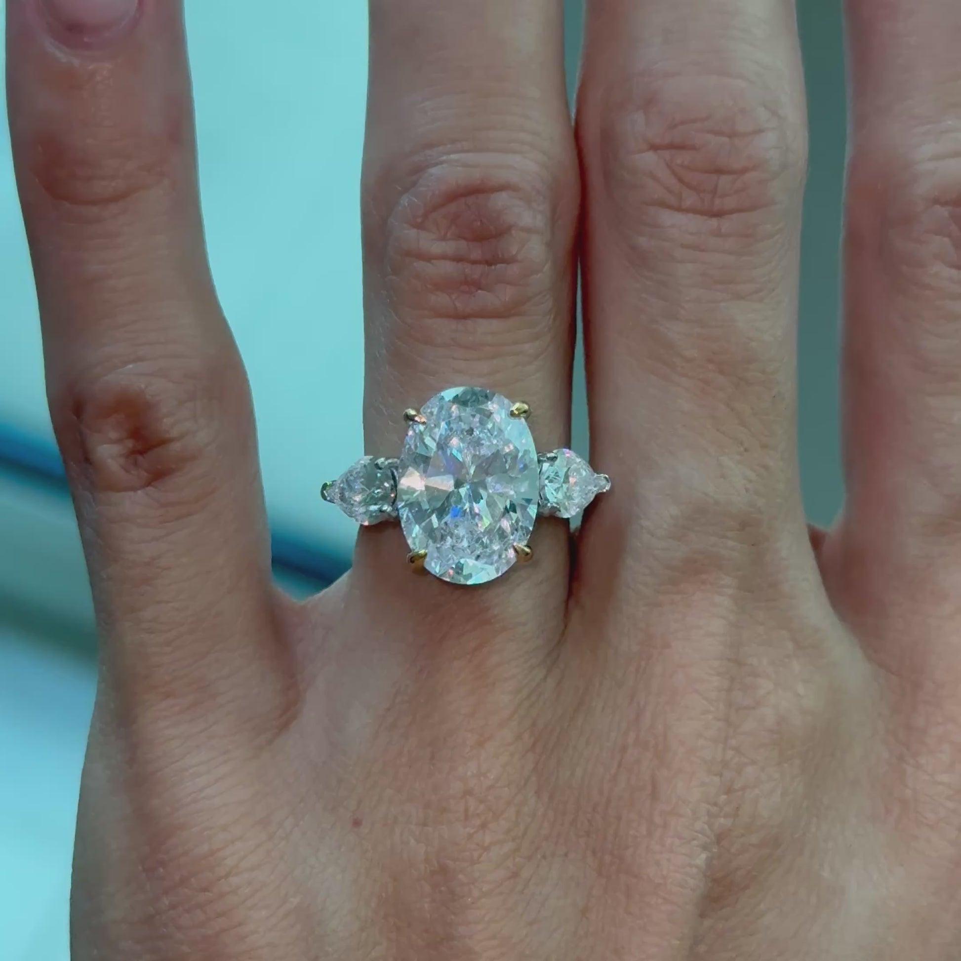 Elevate your style with our exquisite KHALIDA Ring, featuring a large oval trilogy of fine simulated diamonds. Designed with a touch of class and impact in mind, this spectacular three-stone ring is completed with a claw prong setting and a modern band, resulting in an alluring and timeless piece.