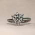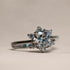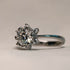 Introducing our KYRA sterling silver ring, adorned with a round brilliant-cut Moissanite in the center, set in a captivating flower shape with simulated diamonds surrounding it. This elegant piece beautifully combines sophistication with nature-inspired charm, making it a perfect accessory for any occasion.