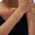The polished silver links provide a fluid, comfortable fit, while the secure clasp ensures durability for everyday wear or special occasions. A sophisticated piece designed for those who appreciate distinctive details and refined sparkle.