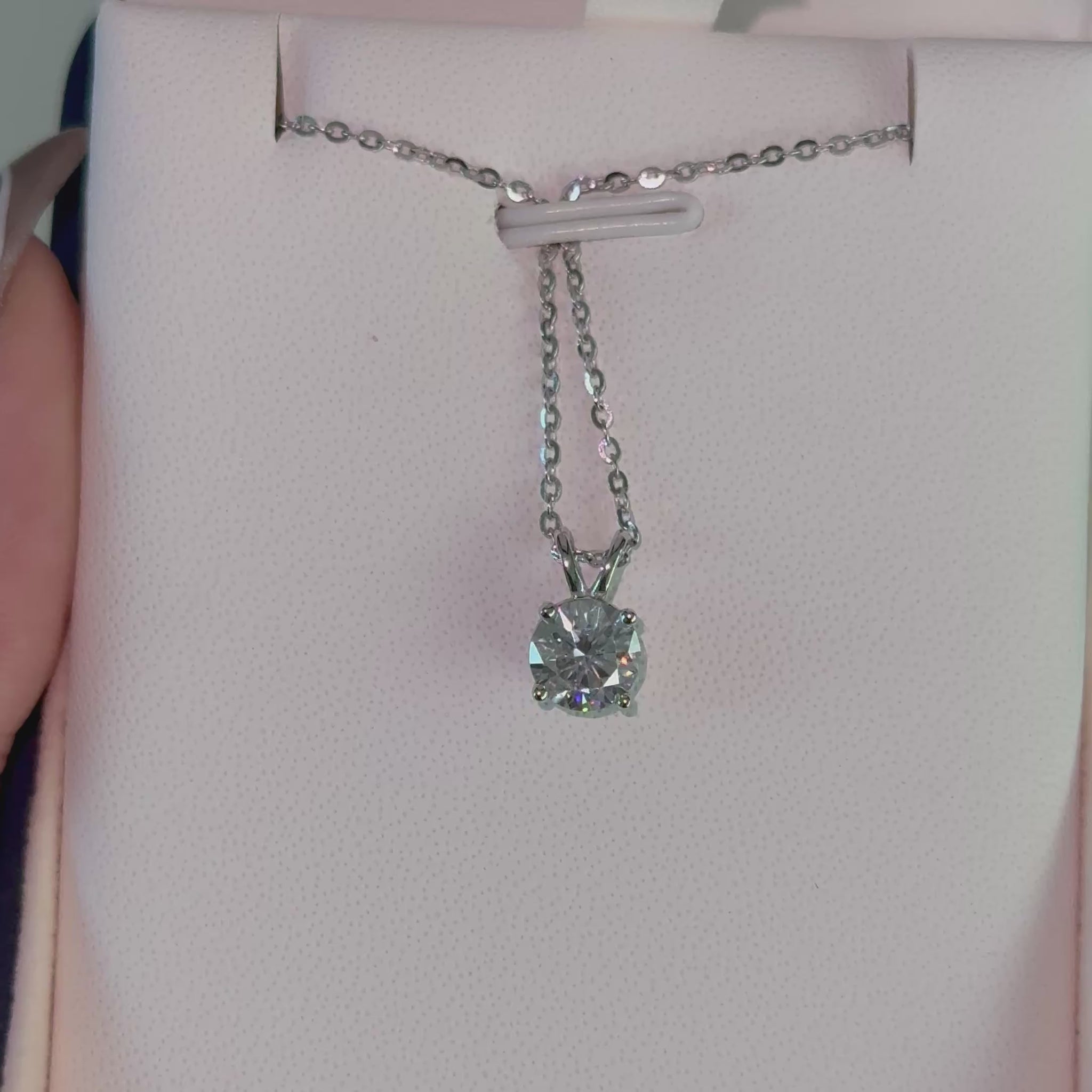 The LUA Necklace Pendant features a single stunning round -shaped Moissanite weighing 1 carat, elegantly set in 925 sterling silver and finished with a sleek layer of rhodium plating for added shine and durability.