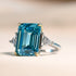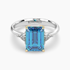 AMIRA ring is a true statement of elegance and sophistication. An emerald-cut solitaire finest simulated diamond is flanked by two tapered stones, showcasing brilliance and fire to captivating effect. This luxurious trio is set upon an 18k White Gold plated in 925 Sterling silver.