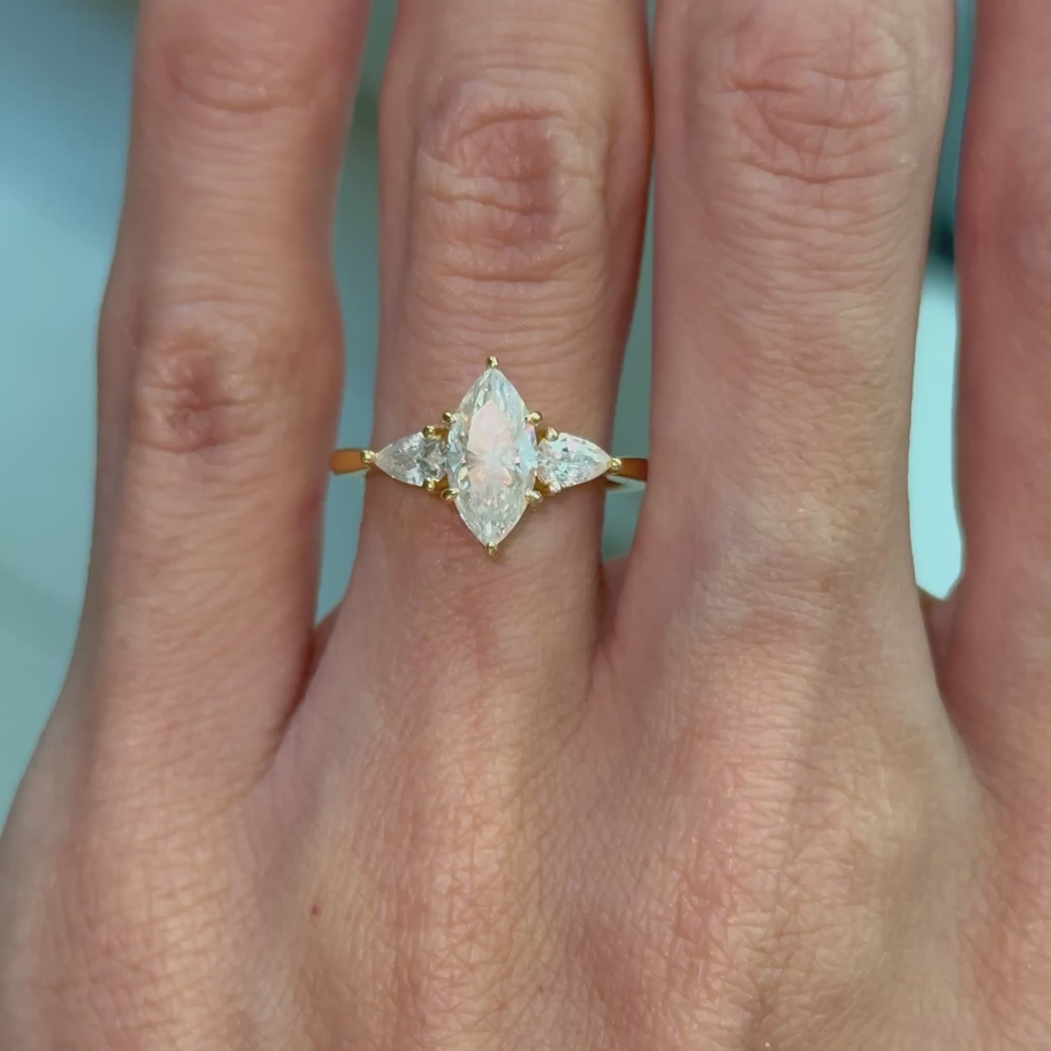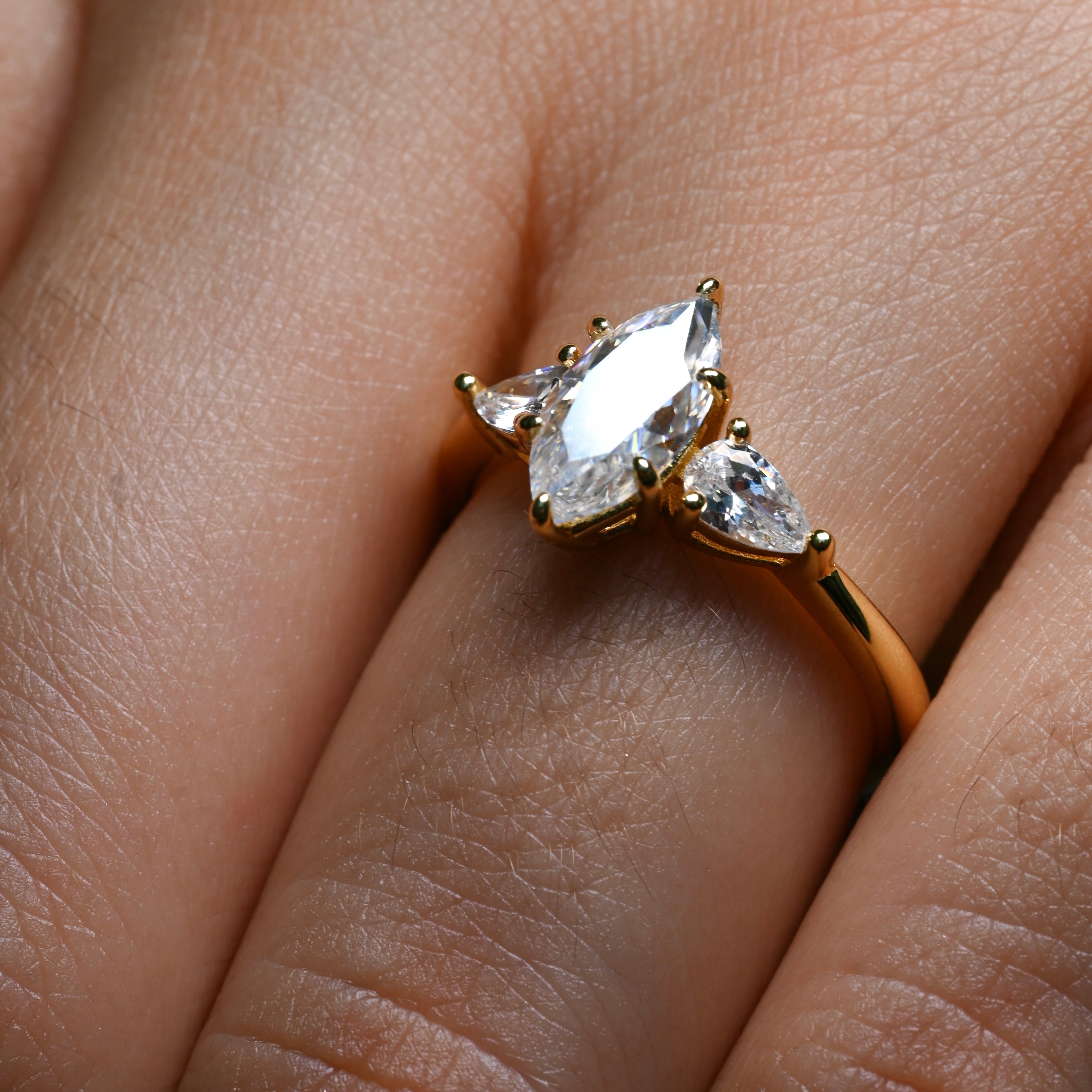 A classic symbol of love and sophistication, this solitaire ring features a dazzling 1-carat marquise shape Moissanite, set in genuine 18K yellow gold plating. Designed for brilliance, its sleek band enhances the radiant sparkle of the stone, making it a perfect choice for engagements, anniversaries, or an elegant everyday statement.