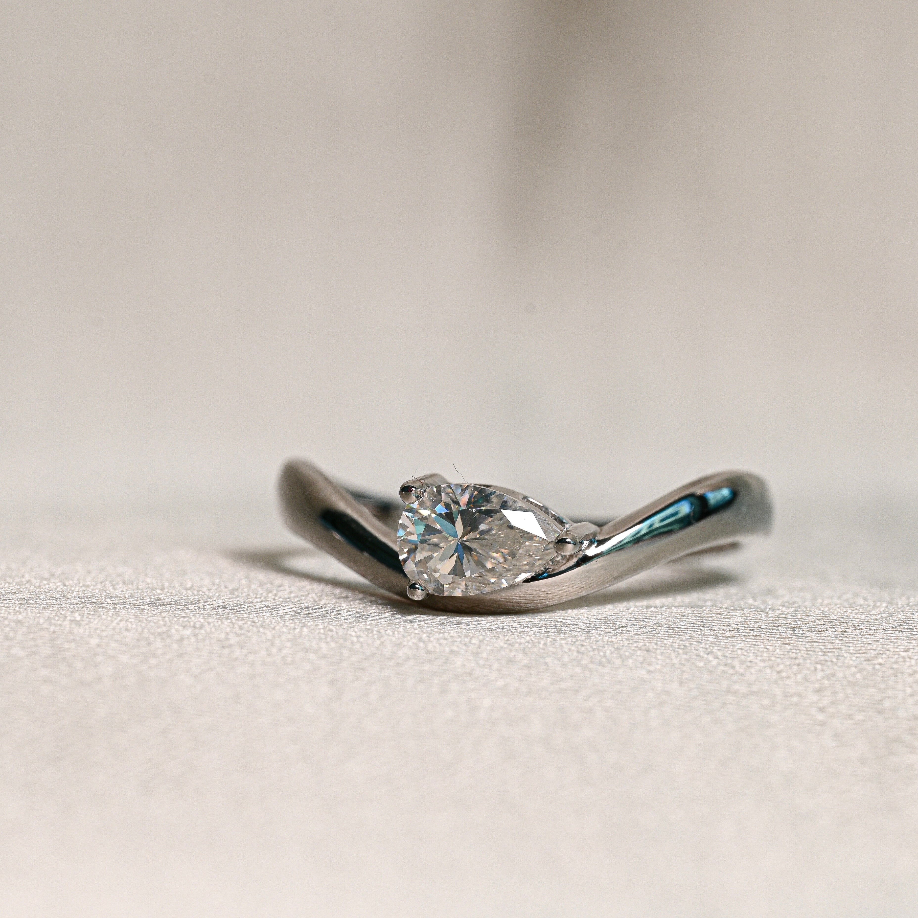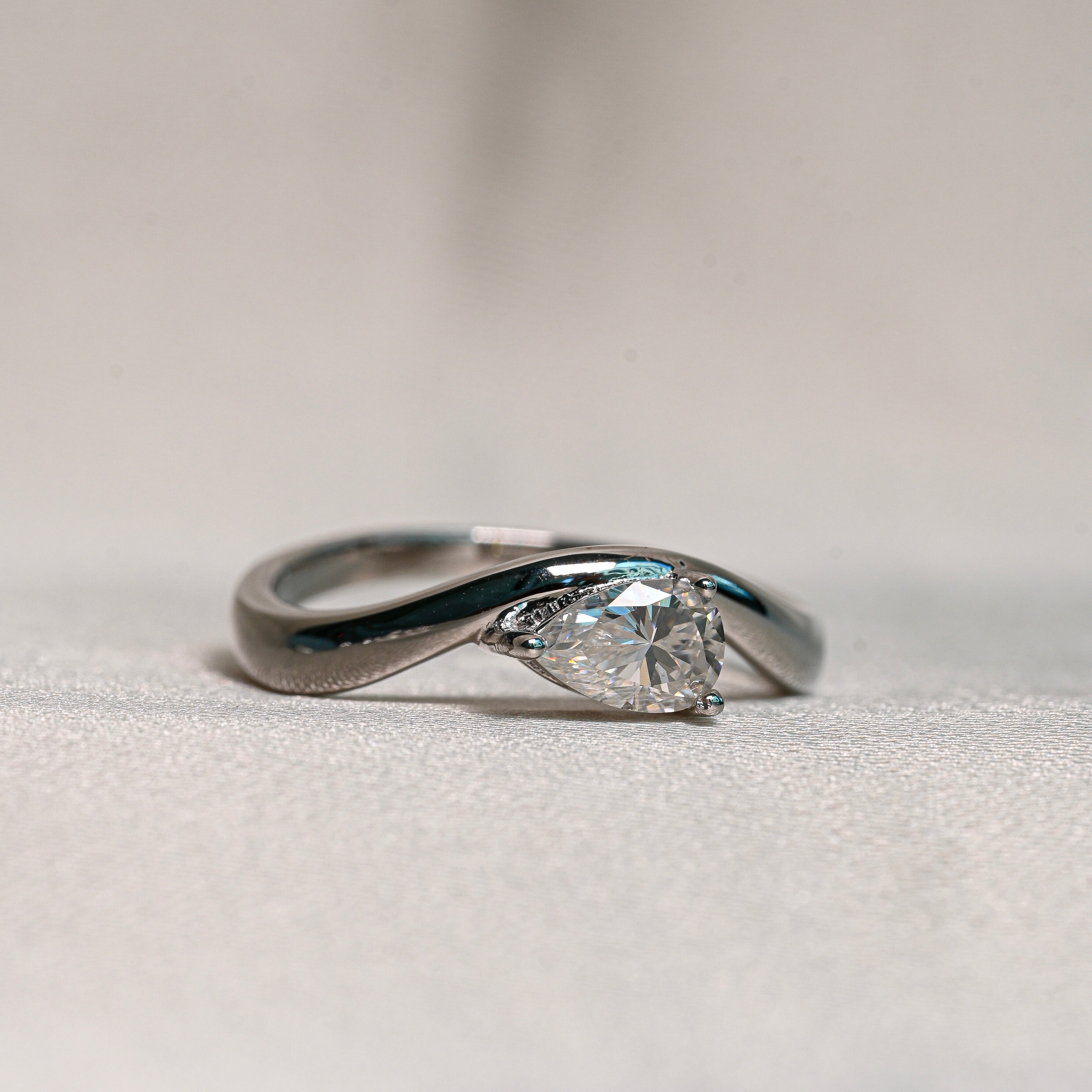 Center Stone: 0.5 Carat Pear-Cut Moissanite (4 × 6 mm)