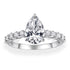 Make a statement of timeless beauty with this stunning 3-carat pear-cut Moissanite ring. The elegant center stone is securely set in a classic three-prong setting, while the band is adorned with a series of round brilliant stones that add extra sparkle from every angle. Handcrafted in 925 Sterling Silver and finished with luxurious White Gold Plating, this ring is designed to shine for a lifetime.
