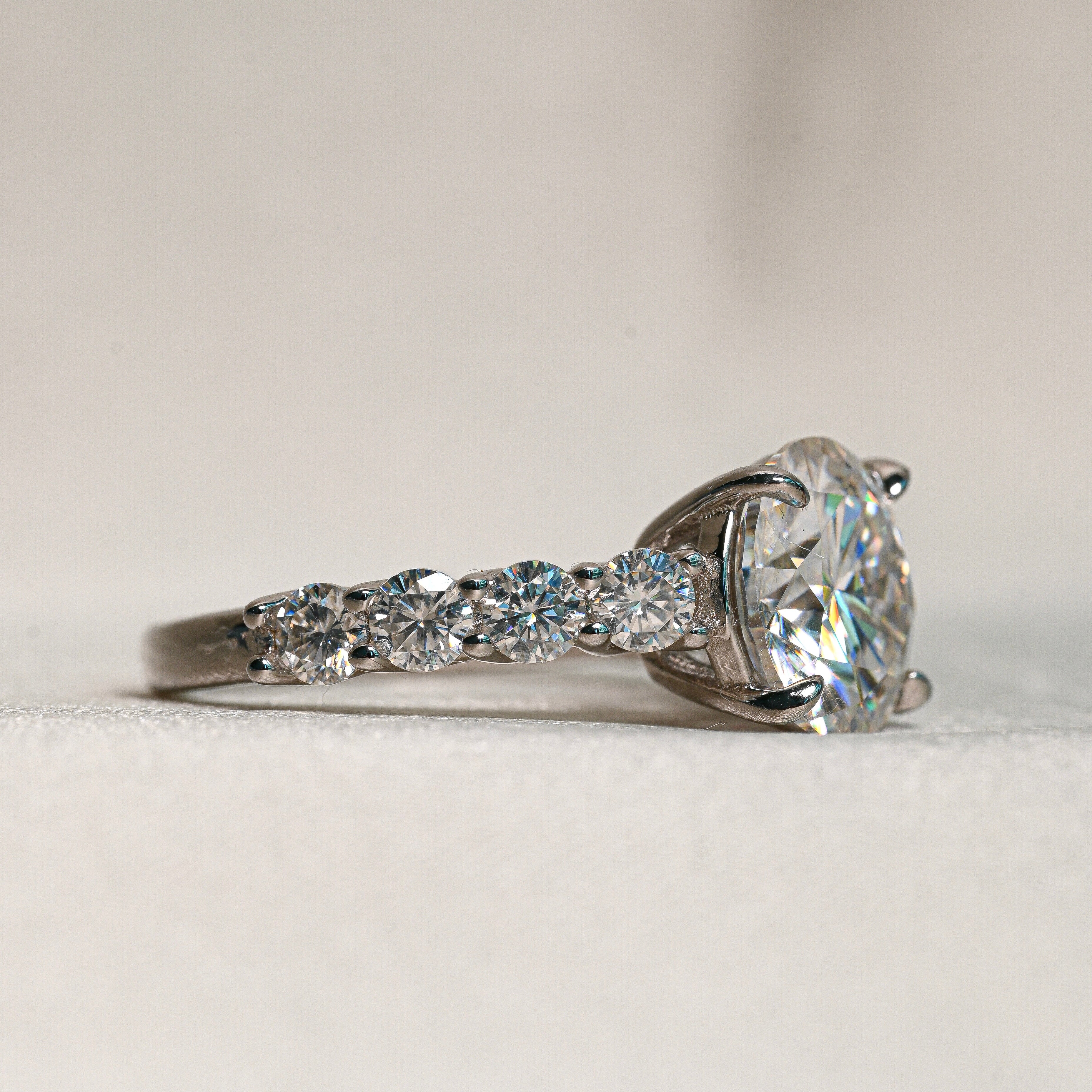 Our Moissanite shines with diamond-like brilliance, offering extraordinary sparkle and elegance that's truly timeless.