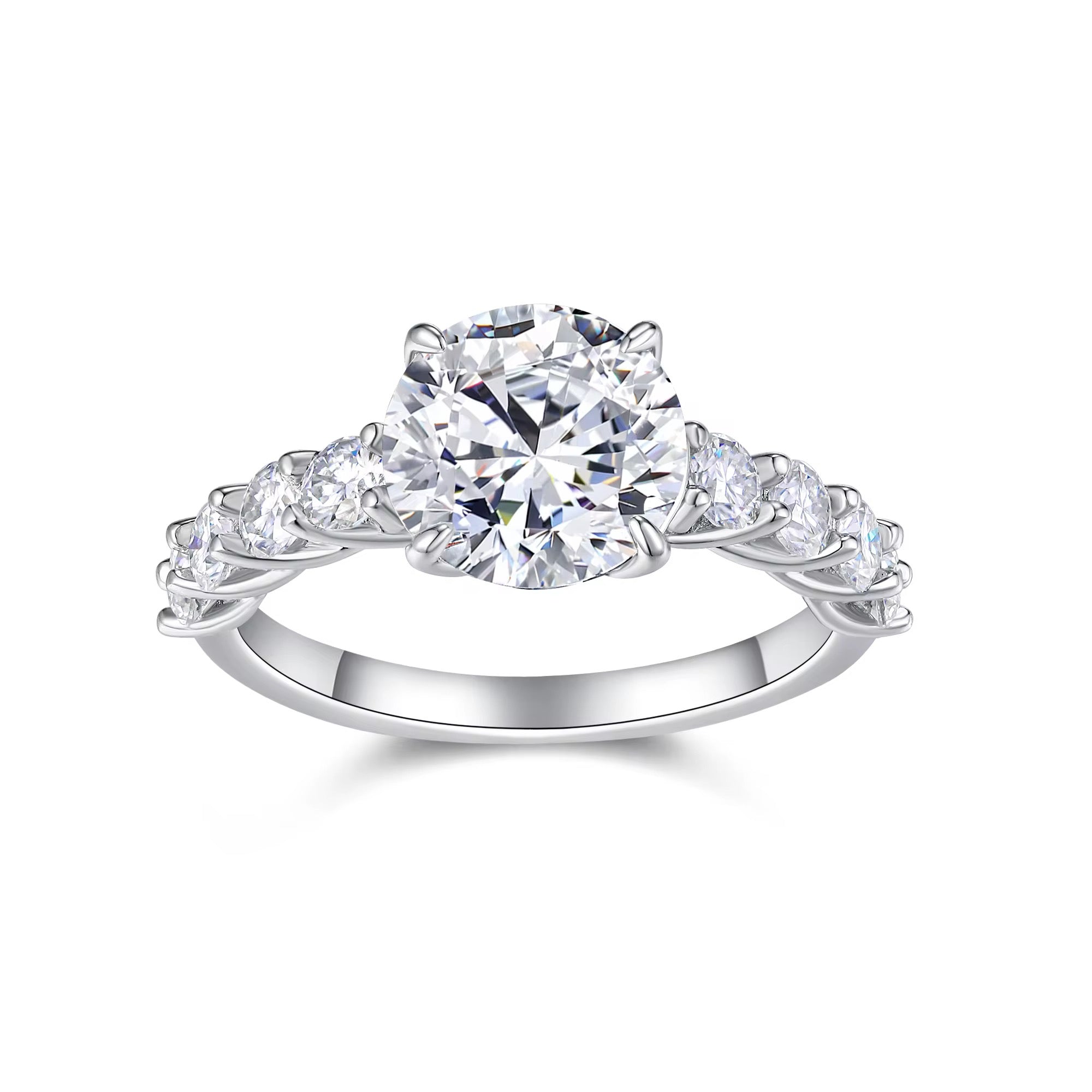 Introducing the YASMEEN Moissanite 3-Carat Ring, a stunning piece that radiates gentle brilliance. Featuring a scintillating 3-carat round brilliant Moissanite center stone held in a shared-prong setting, this ring is crafted in 925 Sterling Silver with Rhodium Plating. The unique gallery enhances the stone’s sparkle, creating a timeless and elegant design.