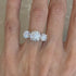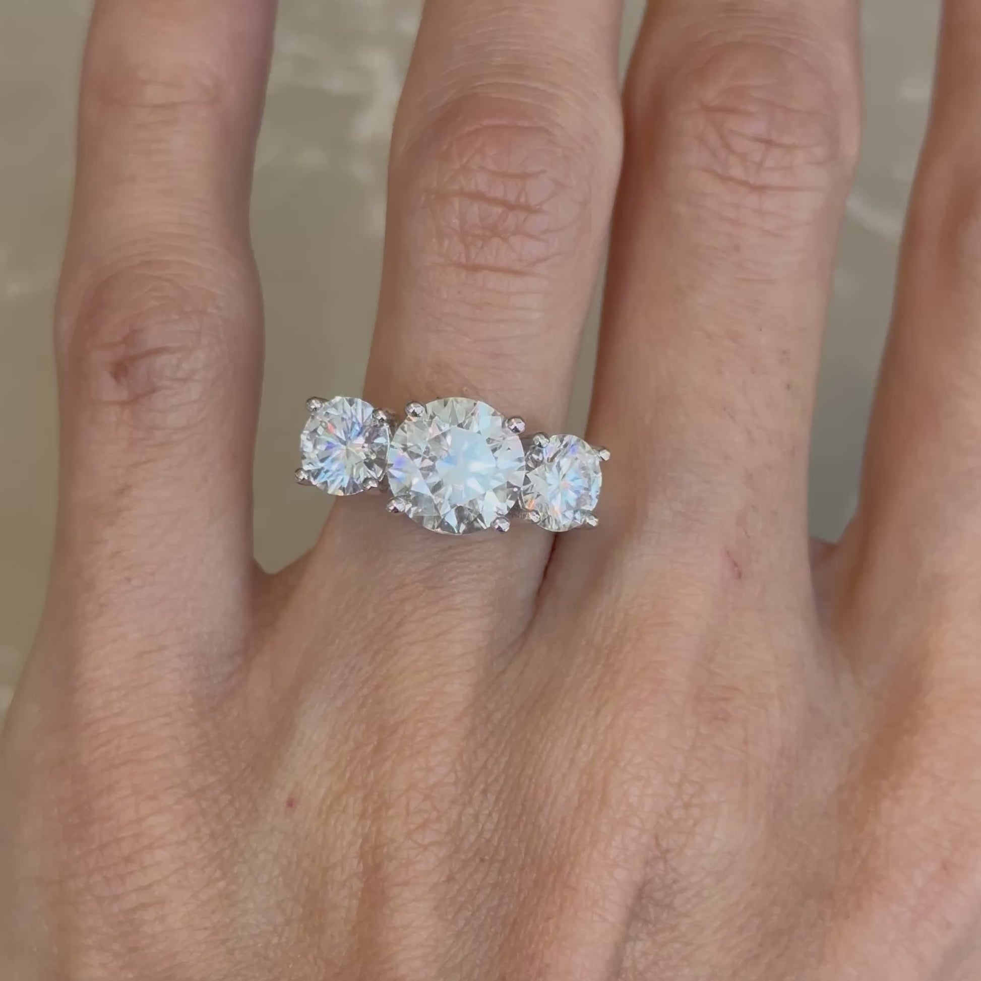 Classic simplicity defines the ZABEL Moissanite 3 carat ring , featuring a sterling silver band that gently tapers towards a center moissanite stone and two side zirconia stones.