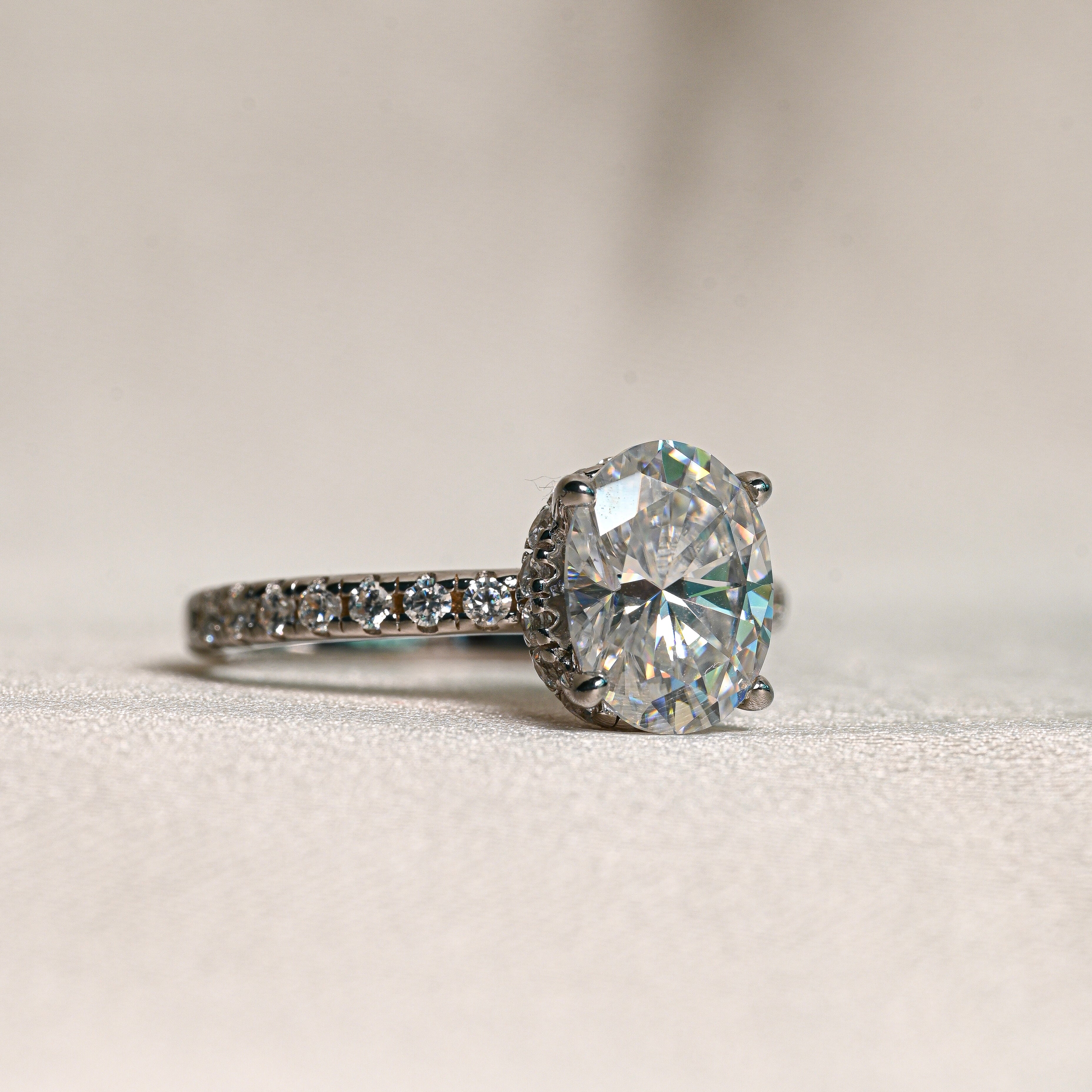 Our Moissanite shines with diamond-like brilliance, offering extraordinary sparkle and elegance that's truly timeless.